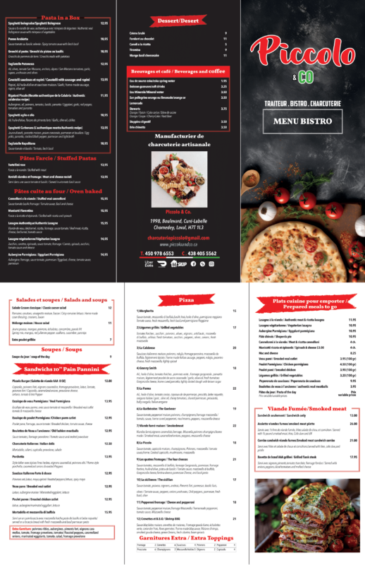 MENUS FORFAIT FROIDS / COLD MENU PACKAGES