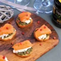 Mousse de Saumon Fumé sur Craquelin avec Brunoise de Câpres et Oignons Rouges / Smoked Salmon Mousse on Crackers with Capers & Red Onion