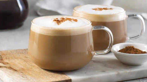 A blend of espresso and steamed milk, topped with a light layer of frothed milk and a dusting of cocoa.