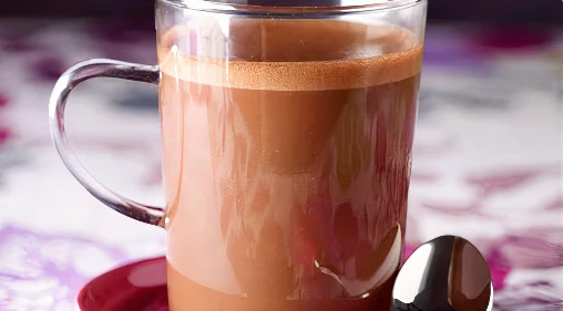 A rich blend of melted chocolate and milk, creating a smooth and creamy beverage.
