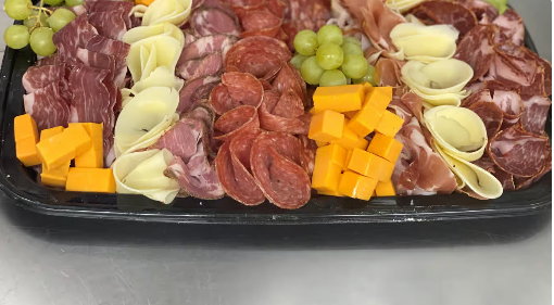 Assortiments de charcuteries maison, légumes grillées et fromage raisin. / An assortment of our homemade charcuterie, grilled vegetables, and fresh grapes.